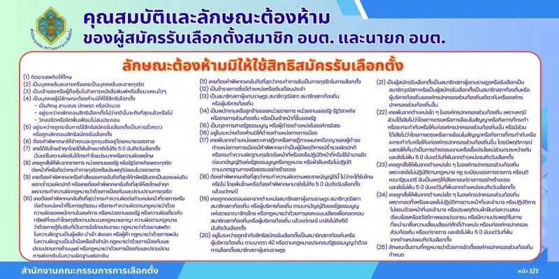 คุณสมบัติและลักษณะต้องห้ามของผู้สมัครรับเลือกตั้งสมาชิก อบต. และนายก อบต.