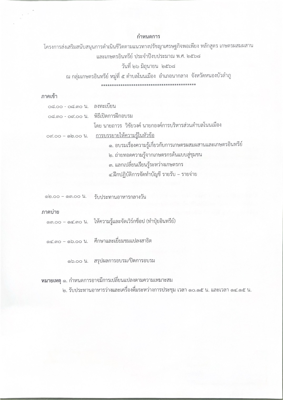 ขอเชิญเข้าร่วมโครงการส่งเสริมการดำเนินชีวิตตามแนวทางปรัชญาเศรษฐกิจพอเพียง หลักสูตรเกษตรผสมผสานและเกษตรอินทรีย์ ประจำปีงบประมาณ 2568