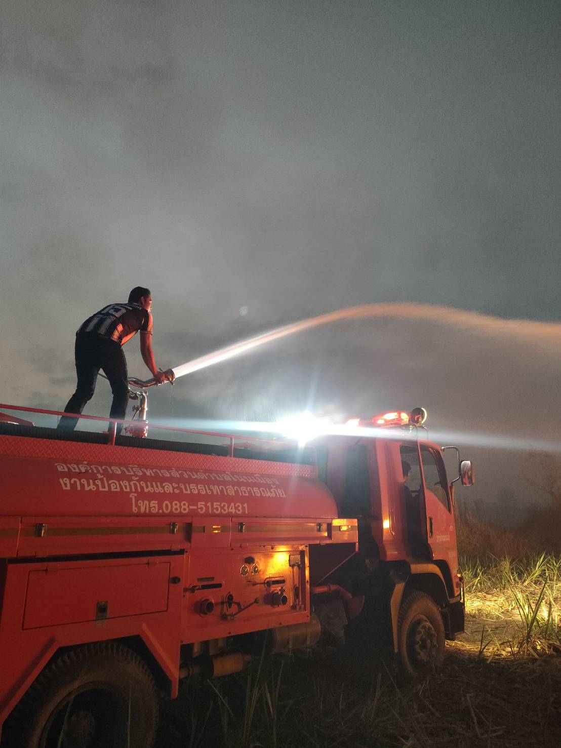 ภารกิจระงับเหตุไฟไหม้ป่าอ้อย เส้นบ้านภูพระ-โนนเมือง ช่วงเย็นวันที่ 5 มีนาคม 2569 เวลา 18:30 น. ที่ผ่านมาเพลิงสงบ เรียบร้อย